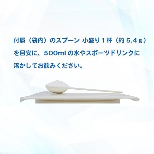 付属のスプーン1杯を500mlの水に混ぜるだけ。「水分」「マルチビタミン」「クエン酸」「必須アミノ酸」「ナトリウム」を素早くチャージ。