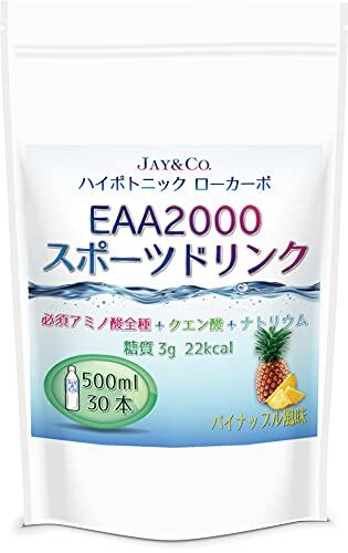 JAY&CO. 粉末 必須アミノ酸 EAA 入り ハイポトニック スポーツ飲料 (低糖質ローカーボ・低カロリー) (パイナップル, 30本分)