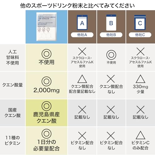スポーツドリンク 粉末【国産/人工甘味料不使用】(クエン酸 2,000mg+11種のビタミン ミックス1日分)脂質0 (500ml用)20包