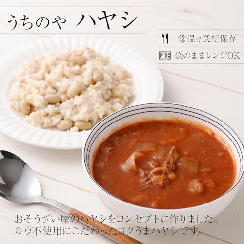 うちのやハヤシ:エネルギー 145kcal、たんぱく質 3.4g、脂質 9.5g、炭水化物 12.5g、食塩相当量 1.5g※この表示値は目安です。