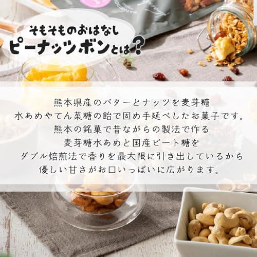 熊本県産のバターとナッツを麦芽糖水あめやてん菜糖の飴で固め手延べしたお菓子です。熊本の銘菓で昔ながらの製法で作る麦芽糖水あめと国産ビート糖をダブル焙煎法で香りを最大限に引き出しているから優しい甘さがお口いっぱいに広がります。