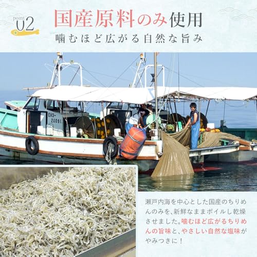 【0.8㎜の薄さに詰まった魅力】カルシウムが牛乳の約8倍!国産原料のみを使用。噛むほど広がる自然な旨味。瀬戸内海を中心とした国産のちりめんのみを、新鮮なままボイルし乾燥させました。