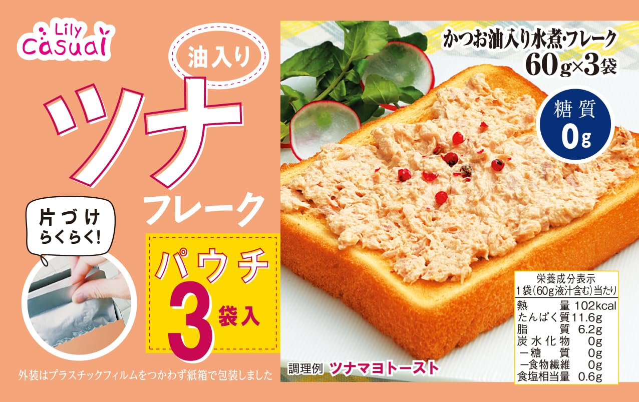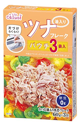 リリー Lily Casual かつおのツナフレーク 油入り水煮 パウチ (60g×3個パック) ×4個
