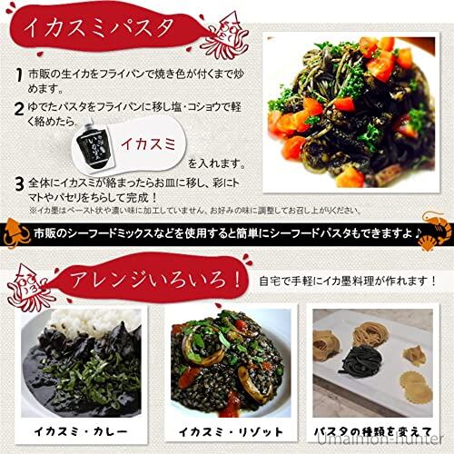【調理方法】いか墨汁は、勿論の事、ジューシー、リゾット、パスタ、カレー、パエリアや炒め物に 鍋なんかは、インパクトがありそうです。最近では、パンに練り込んだり、いか墨マン、ラーメンと無尽蔵にレパトリーが、広がります。