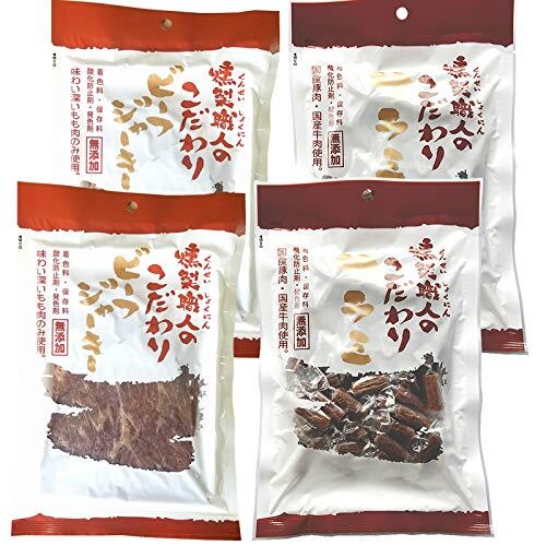 無添加 ビーフジャーキー サラミ セット 燻製職人 YP [無添加ジャーキー2個、サラミ2個セット BY3] 即送