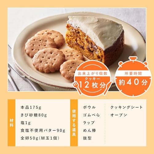 <クッキー(φ5cm 丸抜型約12枚分)> 作業時間約40分(冷却時間を除く) ●材料 本品175g、きび砂糖80g、塩1g、食塩不使用バター90g、全卵50g(M玉1個)
