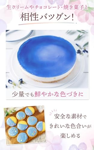 バタフライピー 食紅 粉末 パウダー 食用色素 天然着色料 化学実験パンレット・管理栄養士監修レシピ付き (青) 20g