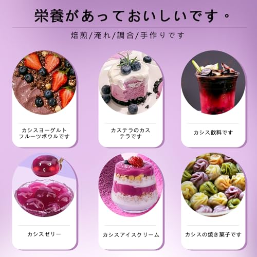 高品質カシス粉使用:果実本来の香りと色合いを活かしています。