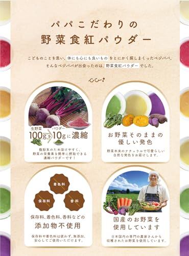 ベジパパ 国産野菜の食紅パウダー 食用色素 天然着色料 食紅 セット 野菜パウダー 無添加 (6色)
