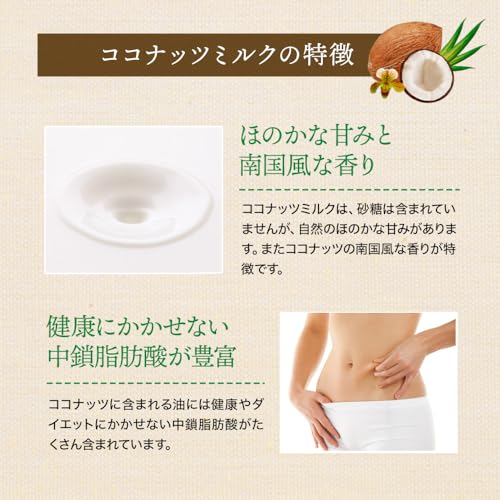 「オーガニックココナッツミルク」は牛乳と比べて消化スピードが早く、すぐに分解されエネルギーとなるので、身体に負担をかけず吸収され、消化器官に優しいことが特徴です。