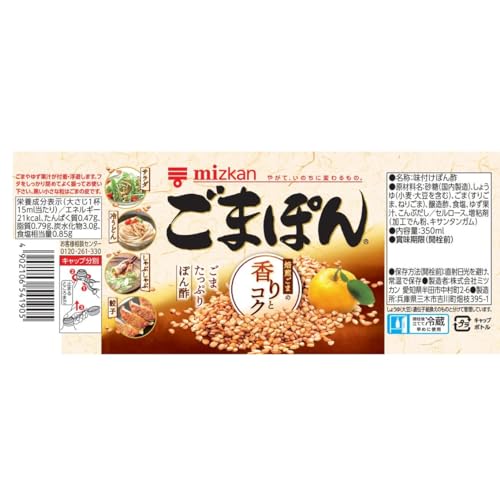 原材料:砂糖(国内製造)、しょうゆ(小麦・大豆を含む)、ごま(すりごま、ねりごま)、醸造酢、食塩、ゆず果汁、こんぶだし/セルロース、増粘剤(加工でん粉、キサンタンガム)