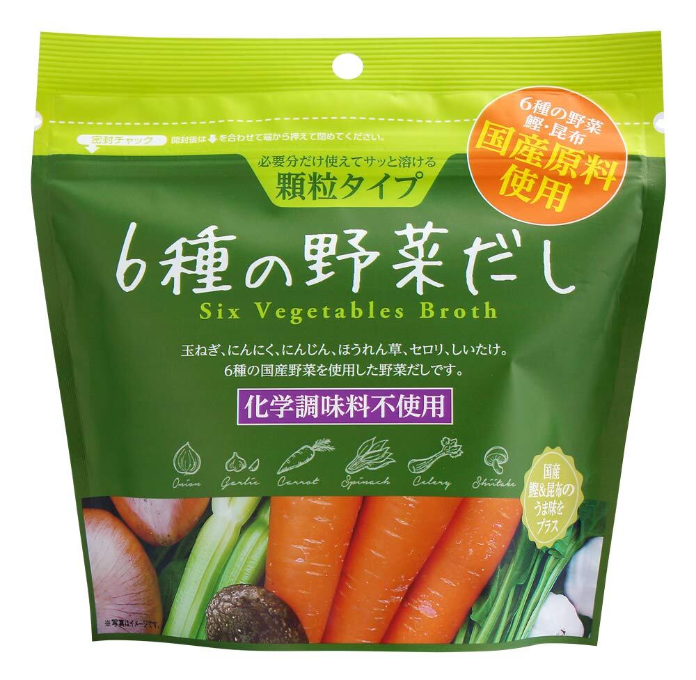 原材料:食塩、乳糖、砂糖、酵母エキス粉末(酵母エキス、デキストリン)、オニオン粉末、ほうれん草粉末、ガーリック粉末、にんじん粉末、セロリ粉末、しいたけ粉末、かつお節粉末、こんぶ粉末