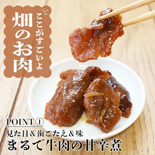 大豆をたんぱくにお肉に見立て、甘辛く美味しく味付けしました。