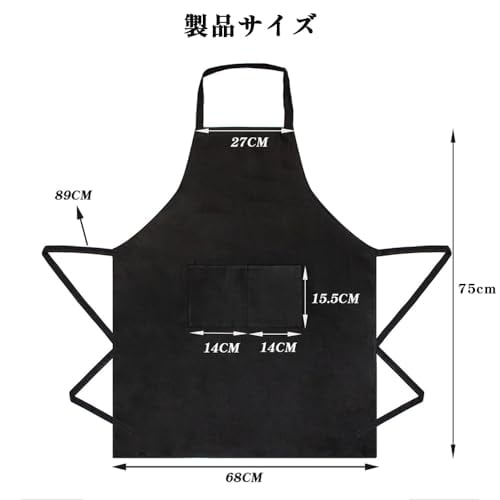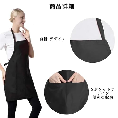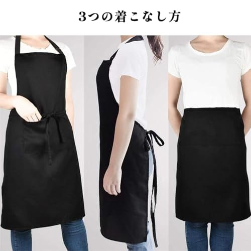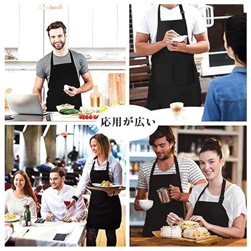[YUHENGCT] エプロン H型 レディース メンズ 黒首掛け 大容量ポケット カフェエプロン ガーデンエプロン 汚れにくい シワ防止 ノーアイロン 男女兼用