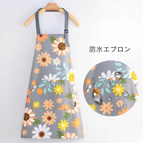 [CAIYUDPTTS] 花エプロン 首掛け シンプル北欧風大容量ポケット付けき 花柄 防水 汚れにくい シワ防止 料理教室用 カフェ
