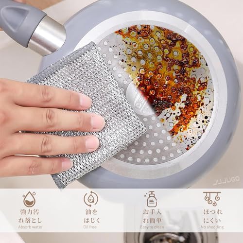 JUJUGO 金属ワイヤークロス 食器洗い ふきん キズつかない 二重層 20x20cm×10枚 両面設計 ラクラク油落ち 速乾 繰り返し使える 衛生的 多機能キッチンクロス