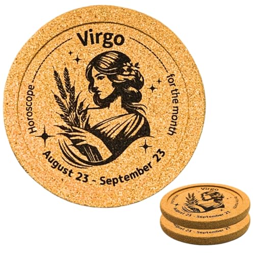HikariAtari 星座コースター、おしゃれなイラスト、コルク、丸型、 十二星座各2枚入り、プレゼントに最適、ジッパー付きクリアケース (乙女座)