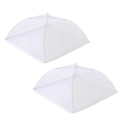 YANYULI 食卓カバー 食卓蚊帳 フードカバー 32*32cm 2個セット メッシュフードカバー ホコリよけ 折り畳み式 收納便利 通気性 ひも付き キッチン用品 キャンプ バーベキューパーティー 家庭用 (ホワイト, 32*32cm)