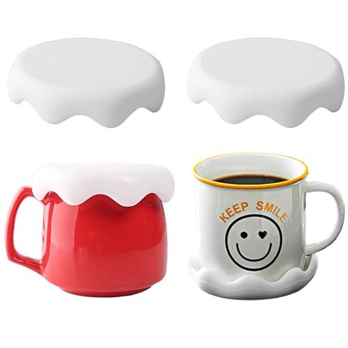 TerraShine マグカップカバー 2個 コップ蓋 マグカップ 蓋 マグカップ保温カバー コップ密閉蓋 かわいい雪の形 漏れ防止 耐冷 耐熱 防塵 再利用可能 ティーカップ コーヒーカップ ホワイト (8cm)