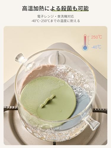 【耐寒性と耐熱性】シリコン製の蓋は-40°Cから250°Cまでの高温に耐えます。 加熱して沸騰させる使用する場合、カップ内の液体の飛び散りや沸騰を防ぐことができます。 冷蔵庫で使用すると食品の鮮度を保ちます。