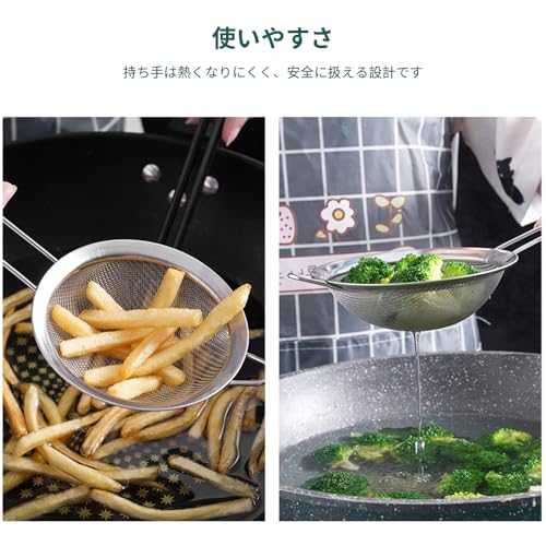 【緻密なメッシュ設計】油、気泡、小麦粉をろ過し、スムーズに調理を完了します。
