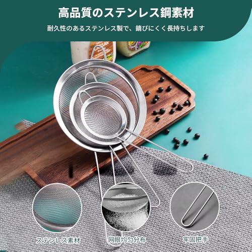 家用漏勺 キッチン用ザル フィルター網 パスタ用網 豆乳 餃子 果汁用油こし網 油取りスプーン 泡取り網 密網油こし器 (7+12+18cm)
