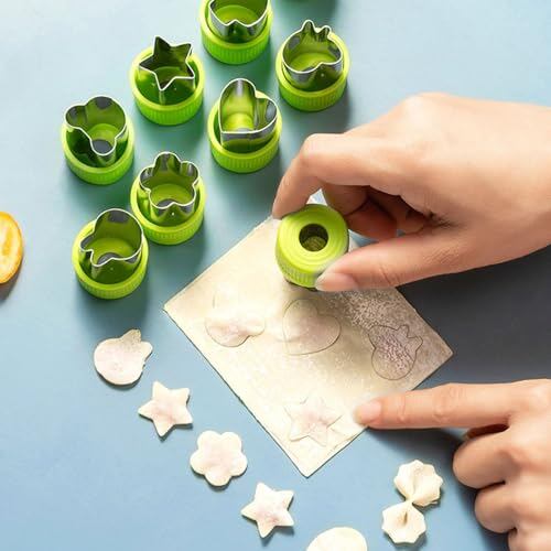 MiniMoodクッキー 型抜き 12個セット 多角形 星型 型抜きお弁当 キャラ弁 ご飯型 果物 野菜カッター ステンレス製 DIY手作り 製菓用品 保護キャップ付き 傷防止 初心者に最適 (緑)