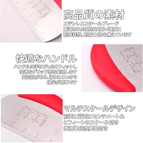 BOJIDO ステンレススケッパー 目盛付スケッパー 1個セット 食品接触用キッチンツール パンスライス ケーキカットに適し(レッド)