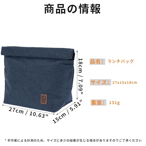 RENEWREVITAL ランチバッグ 保冷バッグ お弁当 保温 保冷袋 オフィス 仕事 ピクニック ビーチ 旅行用 27x15x18cm 1個 ブルー 多用途
