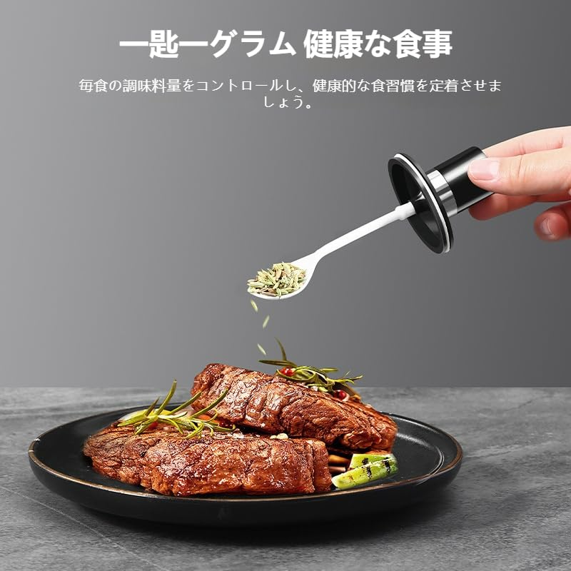 【スプーン蓋一体型】内蔵スプーン設計で他調味料の混入防止&塩・砂糖・粉ものの固まりを防ぎます。