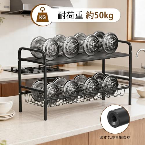 【頑丈なスチール素材】高品質スチールを採用し、表面に防錆・防湿加工を施すことで、シンク下や洗面台下などの水回り環境でも安心して使用可能の収納棚です。頑丈な構造で、重い鍋やキッチン家電を置いてもたわみにくく、長期間使用しても安定感を保ちます。全体的な耐荷重には約50kgで、鍋や調味料、食器、小型家電など、さまざまなキッチン用品をまとめて収納可能です。