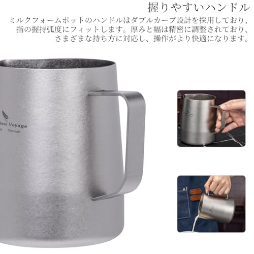 Boundless Voyage チタン ミルクピッチャー ミルクジャグ 600ml ラテアート コーヒー エスプレッソ カプチーノ ミルクフォーマー 軽量 頑丈 食洗器対応 自宅・カフェ用 結晶シルバー Ti3239D